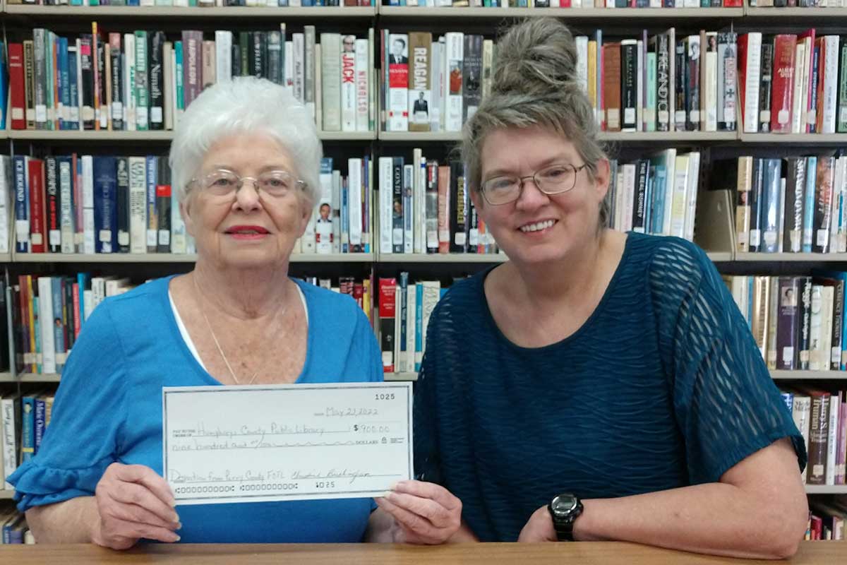 In 2022 Buckingham met with Ethel Carmical, Library Director for the Humphreys County Public Library in Waverly to present the donation. Director Carmical grew up in Lobelville. Her first job was at the Lobelville Library as a library clerk making 75 cents per hour. She has been working at the library in Waverly for more than 50 years and has seen many changes over the years. "We have worked hard to re-open our library and truly appreciate the Perry County Friends of the Library for their generosity," stated Carmical, "We can certainly put this donation to good use. Thank you all."